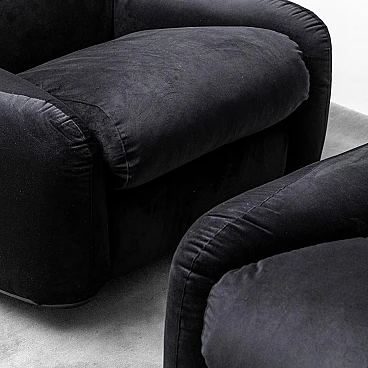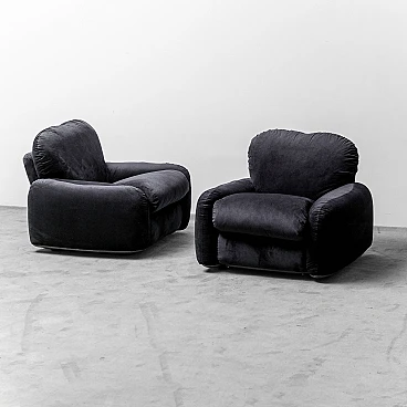 Pair of Piumotto armchairs by Arrigo Arrigoni for Busnelli, 1970s. Black velvet cover. Plastic feet.