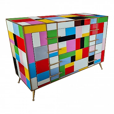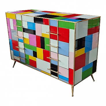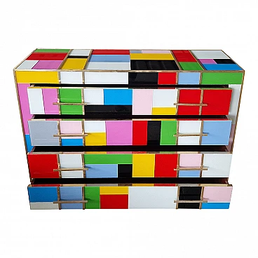Multicoloured Murano glass four-drawer dresser, 1980s