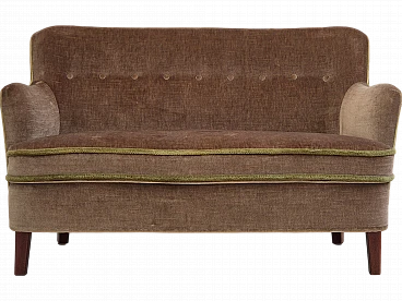 2-Seater Danish sofa in green velour & beech legs, 1960s