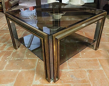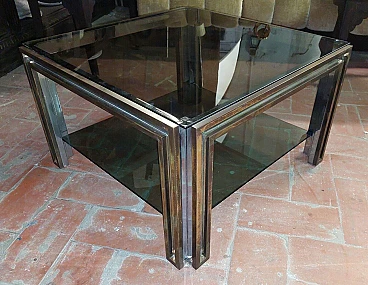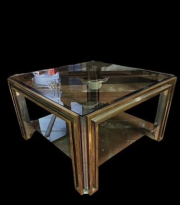 Brass, chromed metal and glass coffee table by Maison Jansen, 1970s