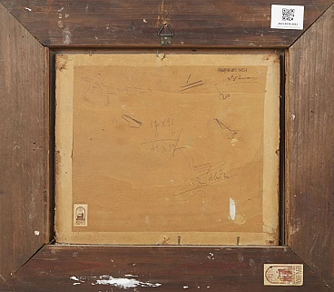 Oil painting on panel by Angelo Pavan (Vicenza 1893 – Venice 1945) depicting the Basilica of San Marco. Coming to painting following a path of self-training, from the second half of the 1910s he exhibited at the Milanese exhibitions of Brera (1916, 1918) and of the Società Permanente (1926, 1927, 1928), at the National exhibitions of Padua (1919) and Turin (1920), obtaining the purchase of some works by the royal family. Winner of the first prize in the Antiblasphemo Competition in Vicenza in 1926 (with the poster Il blasphemiatore), he dedicated himself to landscape painting, preferring lagoon, Venetian and Chioggia subjects, alternating with rarer mountain views and some evidence of trips to Abruzzo and Capri but not he neglects to sometimes even try his hand at genre scenes. Repertoire initially interpreted through pointillist references, later replaced by a more personal and broader gait of mellow brushstrokes. Some of his works are preserved in the Gallery of Modern Art in Milan. From the type of brushstroke, smaller or more open and wider, we can recognize the era of creation of the painting. Pavan's favorite subjects are Venice and Chioggia. In the first period of his activity he also often depicted mountain landscapes. Size without frame: 32 x 38 cm.