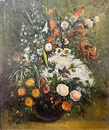 F. De Felice, vase of flowers, oil painting on canvas, 1978