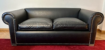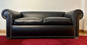 Chesterfield sofa in black faux leather with studded details, 2000s