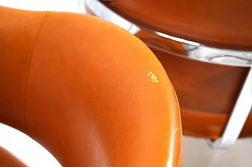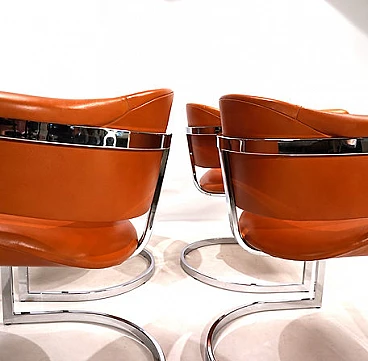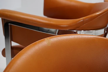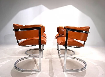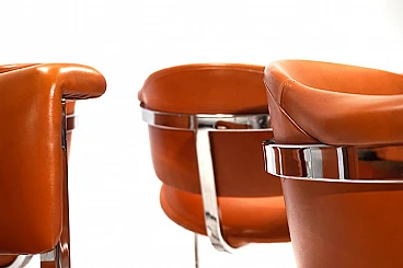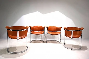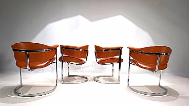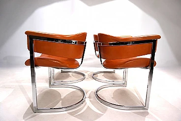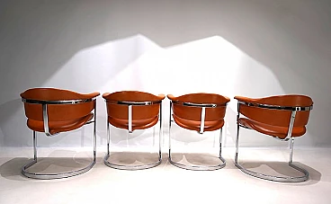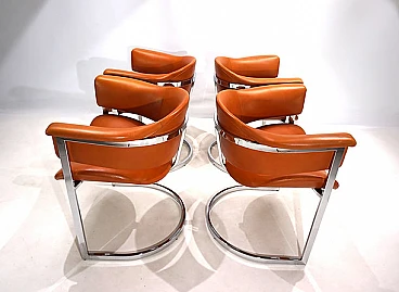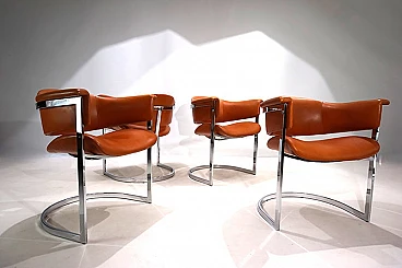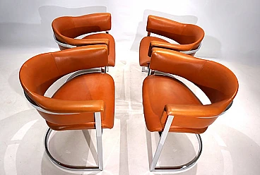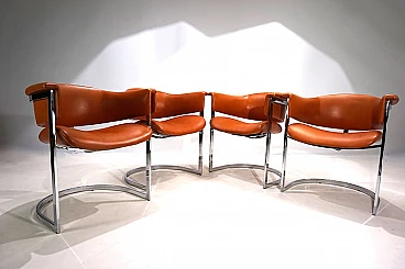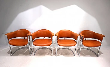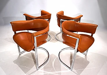 Set of four chairs by Vittorio Introini for Mario Sabot, 1970s. This set is in very good condition. The cognac colored leather shows minor signs of wear and patina, the chrome structures are in very good, almost new condition. The chairs offer excellent seating comfort and with this color combination become a focal point in any room. Italian designer Vittorio Introini designed these chairs for Mario Sabot in the 1970s and created a sought-after classic. Mario Sabot is known for high-quality furniture with distinctive designs. Seat height: 46 cm. Seat depth: 45 cm. Armrest height: 68 cm.