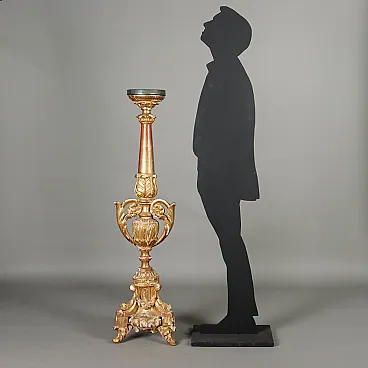 Carved & gilded wooden torch holder with leaf festoons, 19th century
