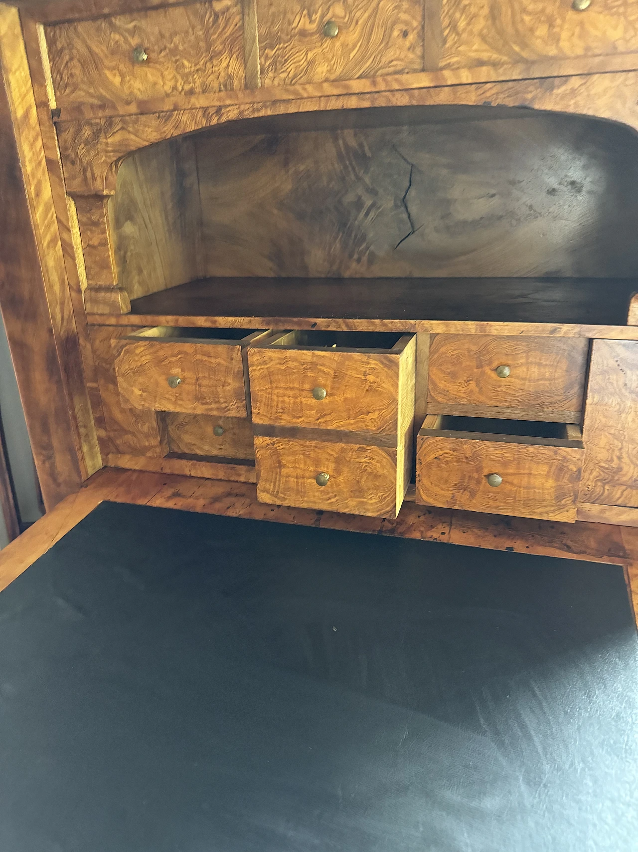 Three-drawers secrétaire in walnut feather, 19th century
