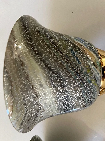 Pair of Murano glass and brass appliques. Price - €750.00 per set. Style - Italian. Design Period - 1980 to 1989 Production Period - 1980 to 1989. Country of Manufacture - Italy. Additional Item Information - Pair of Murano glass and brass appliques. Venetian mouth blown glass from the 1980's. Exquisite Multicolored Murano Glass shades on a brass surface Height 26.5 cm; Width 14.5 cm; Depth 14.5 cm. Features 1 light. Requires E14 light bulbs. New wiring installed compatible with EU UK USA. Shipping in a wooden crate for safe arrival. Materials - Murano Glass. Color - Multicolored. Weight Range = Light — Under 40kg. Detailed Condition - Very Good — This vintage/antique item has no defects, but it may show slight traces of use. Restoration and Damage Details - Rewired and/or new electrical components. Plug Type - Not Applicable. Is this piece in working condition? Yes, I have had a professional electrician re-wire the piece. Height = 26.5 cm; Width = 14.5cm; Depth = 14.5cm.