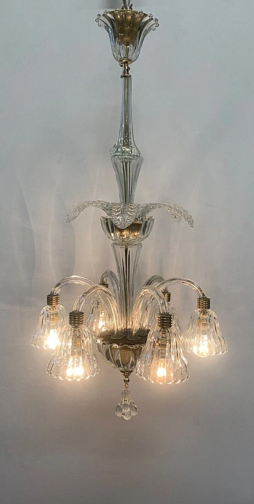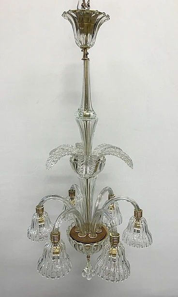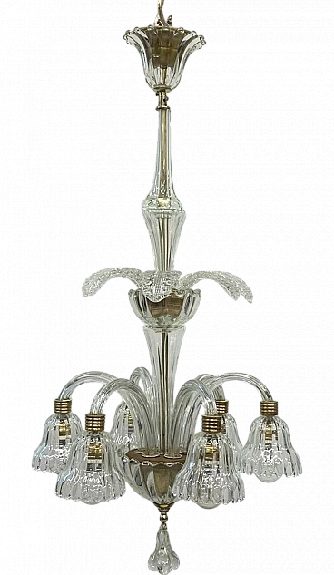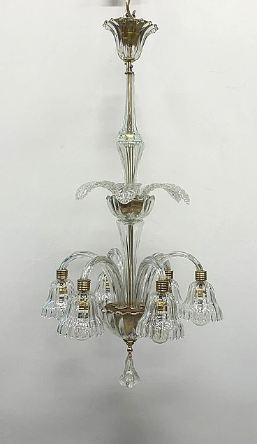Murano glass six-light chandelier attributed to Seguso, 1950s