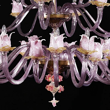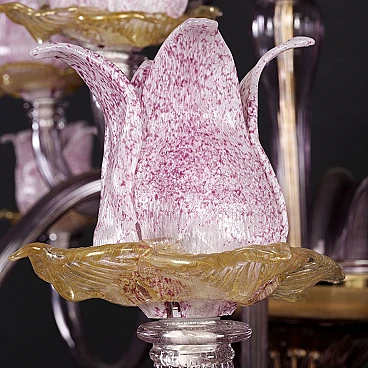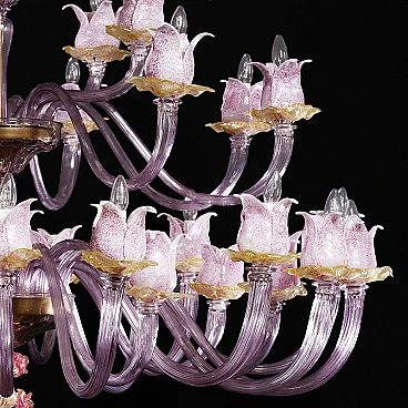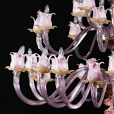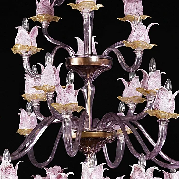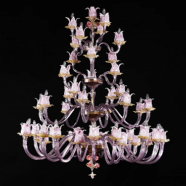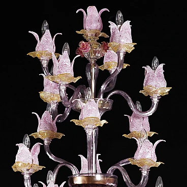 Magnolia chandelier in pink & amber Murano glass, 1940s