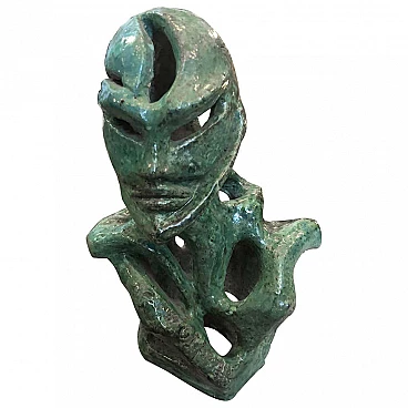 Futurist green ceramic Italian sculpture of a bust, 1930s