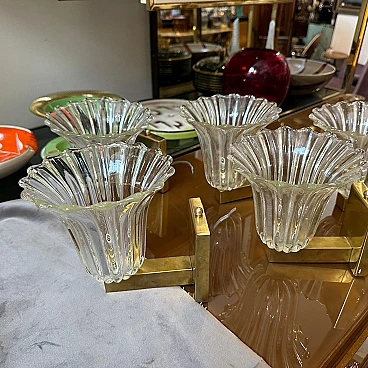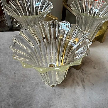 Brass & clear Murano glass wall sconces by Barovier, 1940s