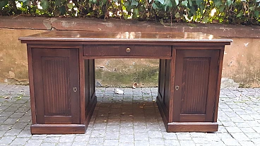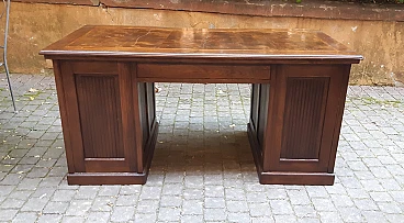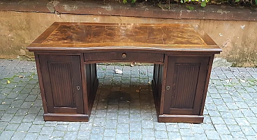 Desk with two side doors & drawer in oak & briarwood top, 19th century