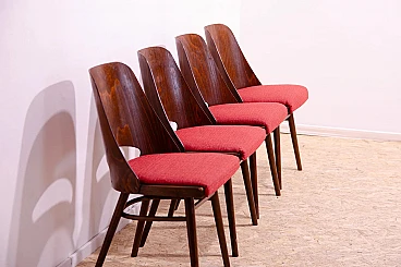 4 Chairs in wood and fabric by Radomír Hofman for TON, 1960s