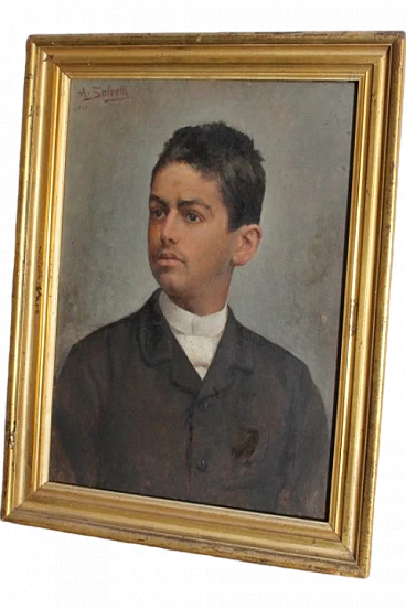 Antonio Salvetti, boy portrait, oil painting on canvas, 1890