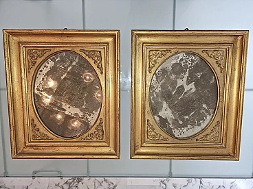 Pair of mirrors with wooden and gilded plaster frame, 19th century