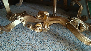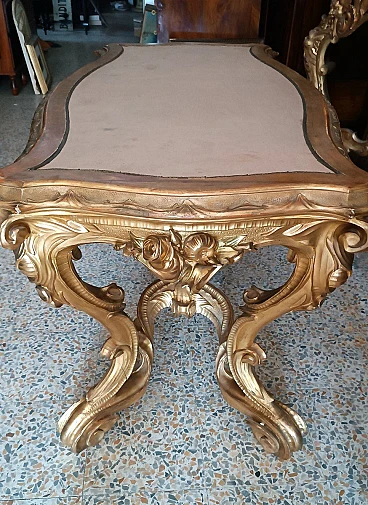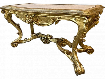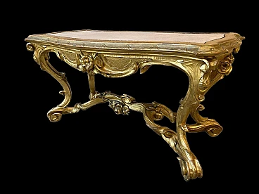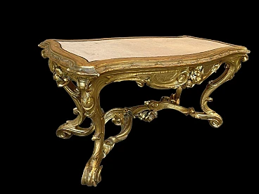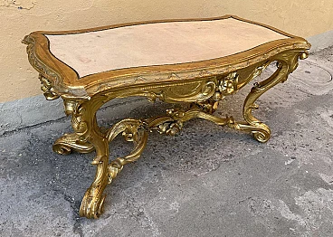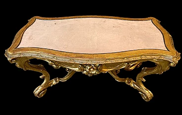 Coffee table in gilded & carved wood with fabric top, 19th century