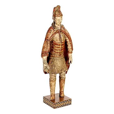 Roman soldier, painted and lacquered wooden sculpture, 18th century