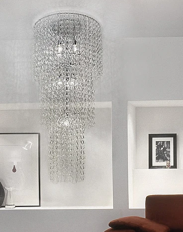 Giogali chandelier in glass & iron by Mangiarotti for Vistosi, 1990s