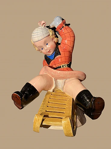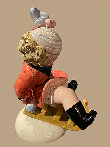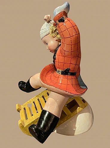 Little girl on toboggan, ceramic statue. Tarcisio Tosin, La Freccia. 1930s. Excellent state of preservation. Measurements: h 34 cm.