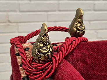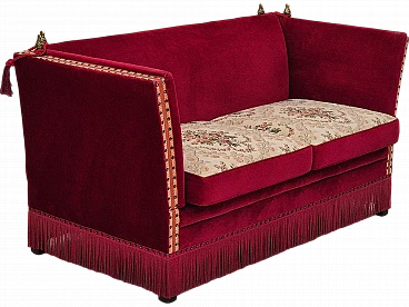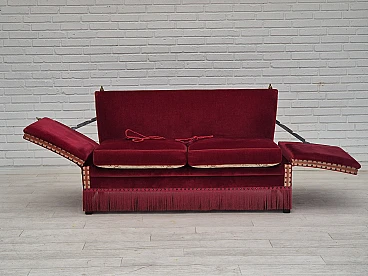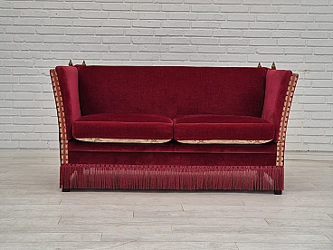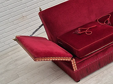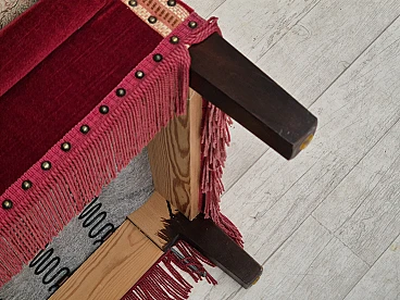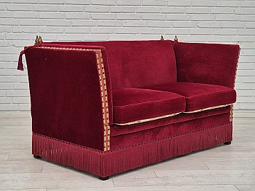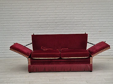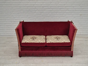 Danish 2-seater sofa in ash wood with red velour covering, 1970s