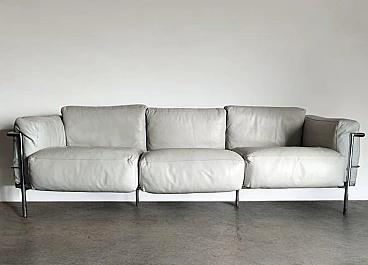 LC3 3-seater sofa in leather by Le Corbusier for Alivar, 1980s