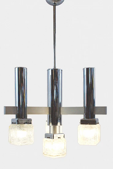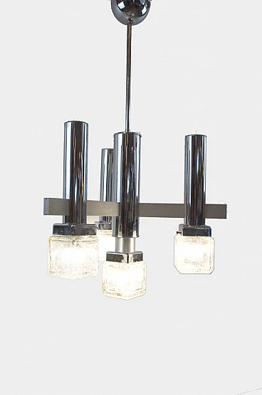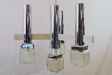 Sciolari-style chandelier with pulegoso glass cubes, 1970s