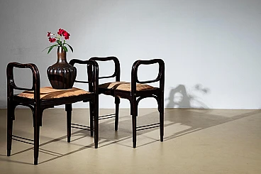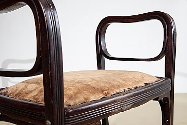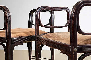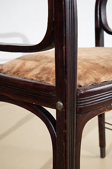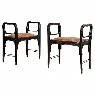 Rare pair of stools model number 412 designed by Otto Wagner and manufactured by Jakob and Joseph Kohn in 1901 in Vienna. A beautiful example of the Viennese Secession, the stools are in good condition. They have been restored and consolidated in the curved wood structure, while what remains of the original fabric, visible in the photo, has been left to testify to their originality. Bibliography Giovanni Renzi, ‘Il mobile moderno’, Silvana Editoriale Spa, Milan, 2008. S.48-49 Asenbaum, Haiko, Otto Wagner. Möbel und Innenräume, Salzburg/Vienna 1984, p. 86, ill. 100.