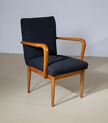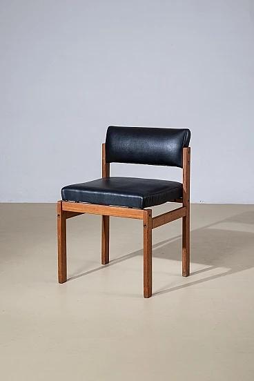 Six chairs made of oak and covered in black skai, Italian manufacture, late 1950s.