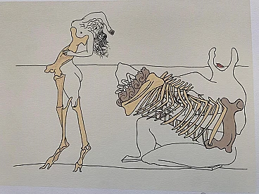 Marcel Jean, Surrealist scene, lithograph, 1960s
