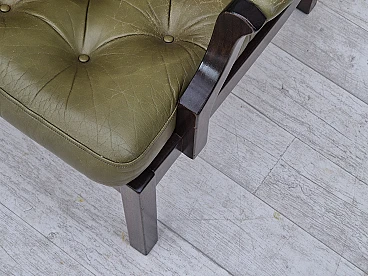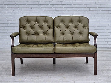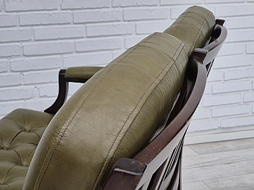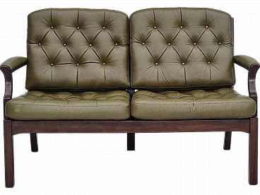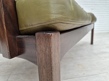 Scandinavian two-seater teak and green leather sofa, 1970s