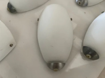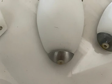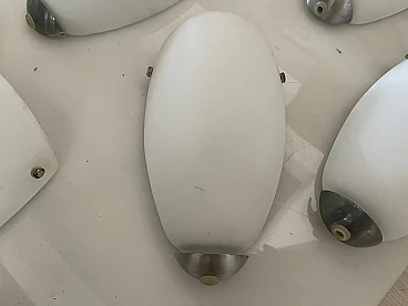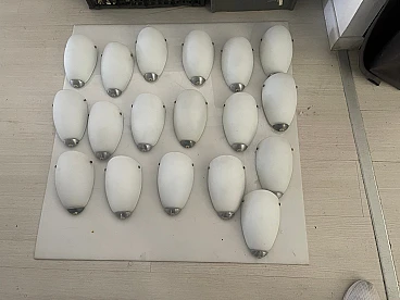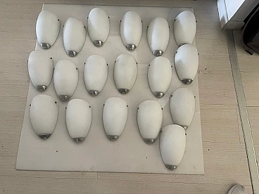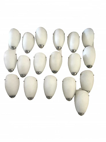 Eighteen Santir wall lights from Ikea, 1990s. Price - € 390.00 per set. Classic design, country of manufacture Sweden, manufacturer Ikea: this piece has an attribution mark, I am confident that it is completely authentic and I take full responsibility for any authenticity issues arising from misattribution. Eighteen chrome-plated lamps in opaline glass. Height 23 cm, width 12.5 cm, depth 6 cm. Featuring one light, requires E14 bulbs. Newly installed wiring compatible with EU, UK USA. Light weight under 40 kg. Good condition, this vintage/antique item may show some signs of wear such as scratches and other signs of time. Light wear and tear due to age and use. Does this piece work? Yes, I had the piece rewired by a professional electrician.