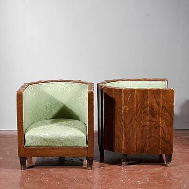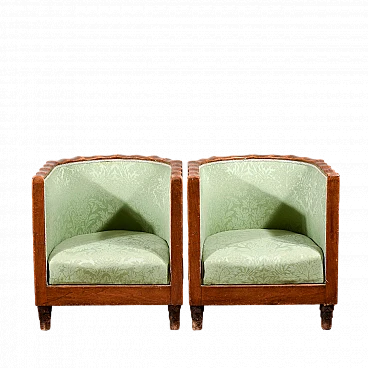 Pair of armchairs signed Gaetano Borsani Atelier di Varedo, measurements 56 x 60 x h 61 x h sed 31 cm. Immediately after the First World War, Gaetano Borsani(1886-1955) opened a cabinet-making workshop in Varedo with about twenty workers. He began with a handcrafted production of stylish and ordinary furniture. But soon, a passionate experimenter, he began to design furniture with a modern line, a line that would be, together with the quality of execution, the hallmark of his home. Excellent condition, vintage items in near-original condition. May show slight traces of use and/or minor restoration.