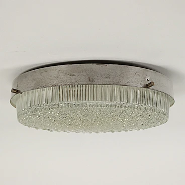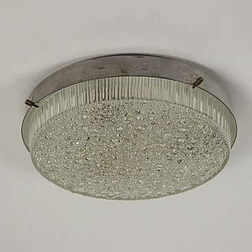 Round ceiling or wall lamp made of chromed metal and glass, 1960s.