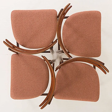 They are are sturdy and stable. Great condition with very minor traces of use and new upholstery. Wooden construction preserved with additional coats of Danish Oil. Seat height: 46 cm.