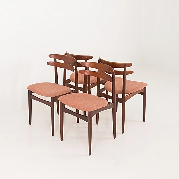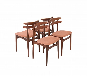 An excellent vintage set of four teak dining chairs “model 178”, designed by Johannes Andersen for Bramin in Denmark in the 1960s, will enrich any dining area with mid-century modern style.