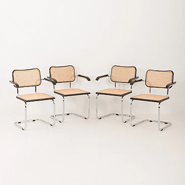 A set of four vintage legendary Ceska Chairs designed by Marcel Breuer and manufactured in Italy, most likely in the 1980s.