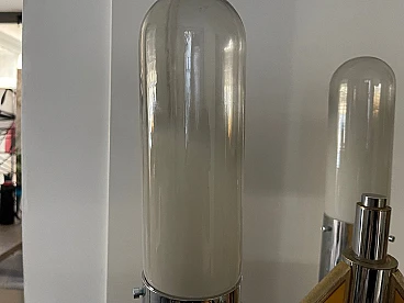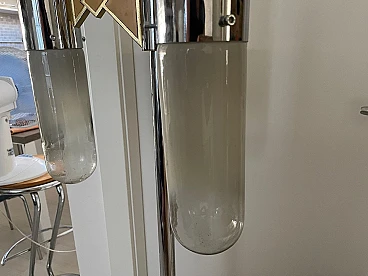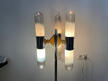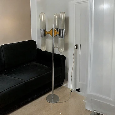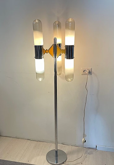 Floor lamp in chrome and Murano glass by Mazzega, 1970s. Price - € 1,200.00 per item. Italian style, Mid-Century. Country of manufacture Italy, Mazzega. This piece was designed in the style of the selected designer and/or manufacturer. Height 158 cm, width 40 cm, depth 40 cm. Tube-shaped lampshades in Murano glass. Central piece in yellow and golden brass. Features six lights, requires E14 bulbs. European plug. Standard weight between 40 kg and 80 kg. Very good condition, this vintage/antique item is faultless, but may show slight traces of use. Slight wear and tear due to age and use. European plug (up to 250V). Is this piece in working order? Yes, I had the wiring checked by a professional electrician.