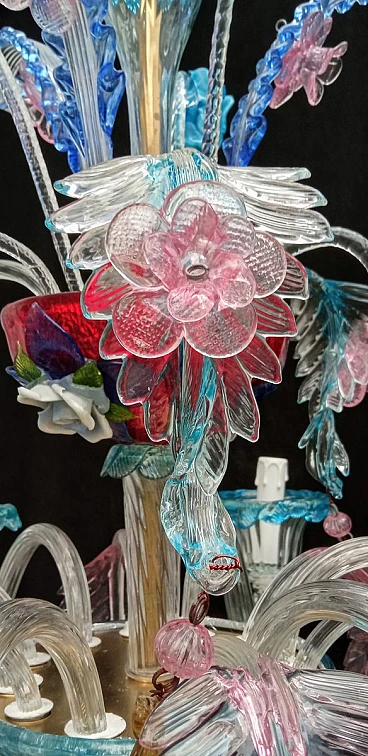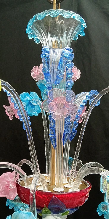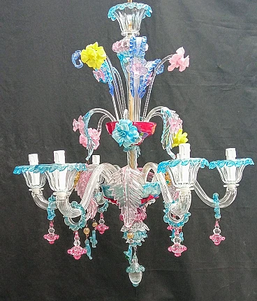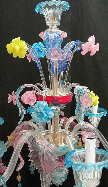 Metal and multicoloured Murano glass chandelier, 1930s