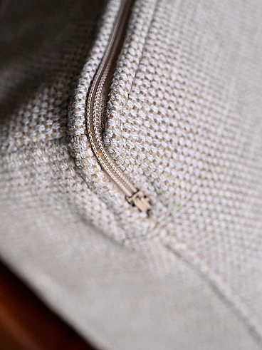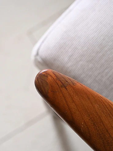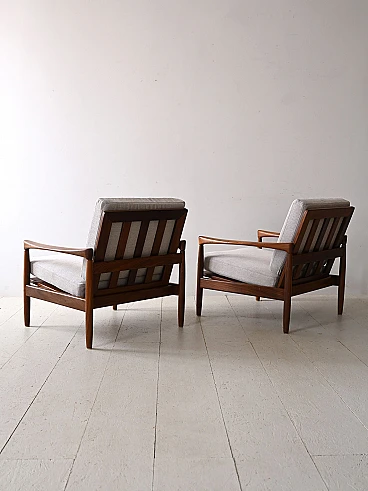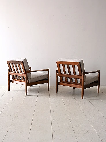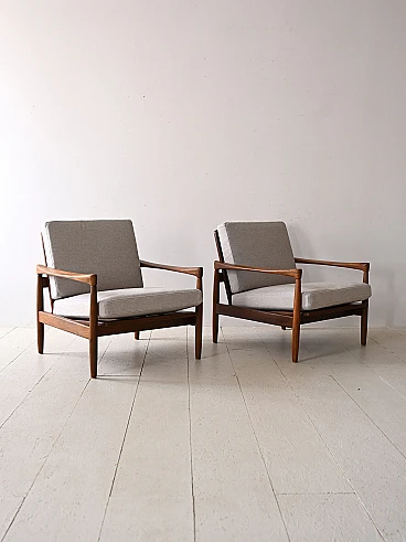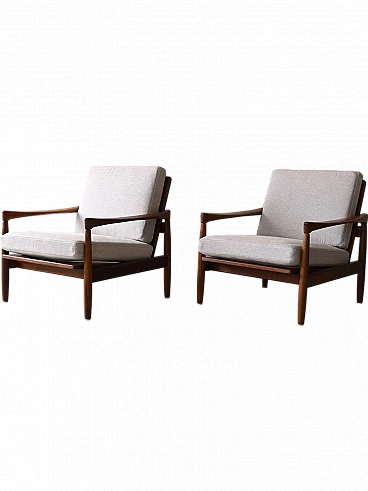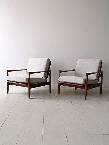 Pair of original 1960s armchairs designed by Erik Wörtz for Ikea. Made with a high-quality teak frame, these armchairs feature a slightly sloping backrest that promises an optimal relaxation experience, while the two upholstered cushions covered in an elegant light-coloured fabric add a touch of softness and style. Perfect for creating a chic relaxation corner in the living room, study or bedroom, this armchair fits harmoniously into any setting, offering the perfect balance of comfort and aesthetics. Good condition, a conservative restoration has been carried out with products of natural origin. It may show some signs of time. Please pay attention to the photographs.