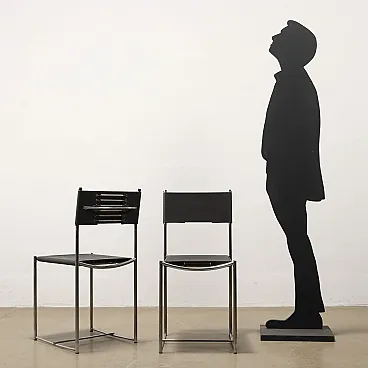 Pair of black leather and chromed metal chairs by Alias, 1980s