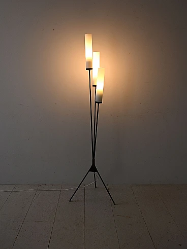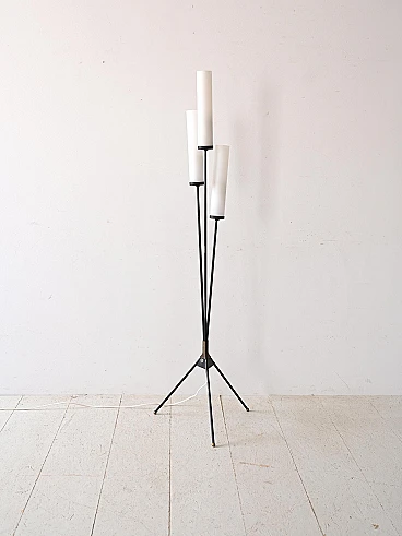 The main structure of the lamp is made of black metal, giving the whole a modern and sophisticated appearance. The conical lampshades diffuse a warm and enveloping light into the surrounding space, ideal for illuminating living areas, bedrooms or reading corners. Thanks to its sturdy structure and the use of quality materials, this floor lamp is a lasting investment for lighting your home, combining design and functionality in a single piece of furniture. Good condition. It may show some signs of time. Please pay attention to the photographs.