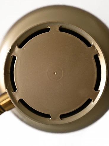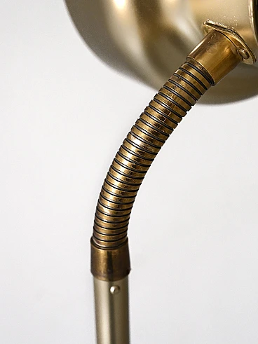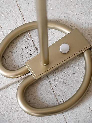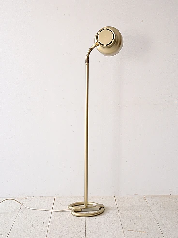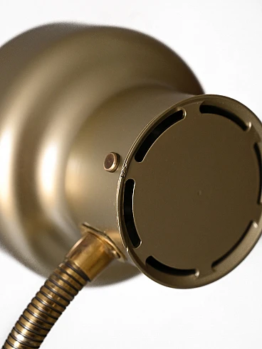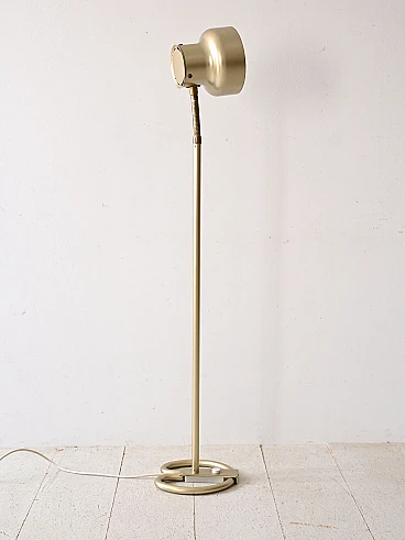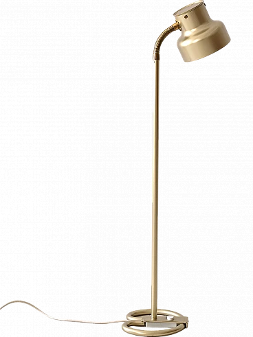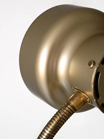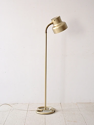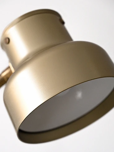 1960s floor lamp in gilded metal. Designed by the designer Anders Pherson for Ateljé Lyktan in the 1960s, it is recognisable by the shape of the lampshade that diffuses the light in a soft, glare-free manner. The light can be directed thanks to the swivelling arm, while the tubular base is distinguished by its distinctive shape. The golden colour gives it a retro and elegant look. Ideal as a reading lamp but also in the bedroom or office. Good condition. May show signs of time. Please pay attention to the photographs.