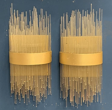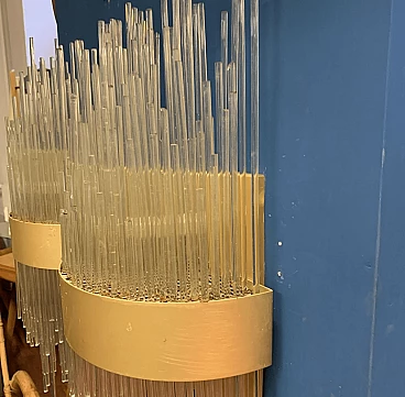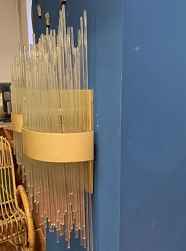 Pair of wall sconce with glass rods and metal with 2 lights, 70's
