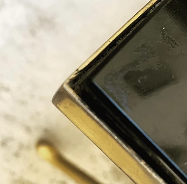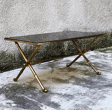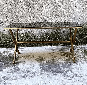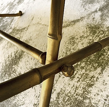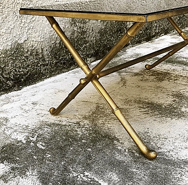 Faux bamboo coffee table in gilded brass with black glass top, 60s
