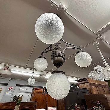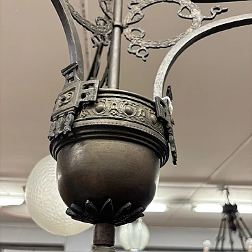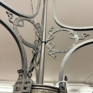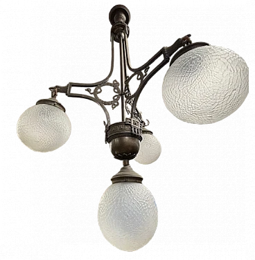 Wrought iron and brass Art Nouveau chandelier, 1930s