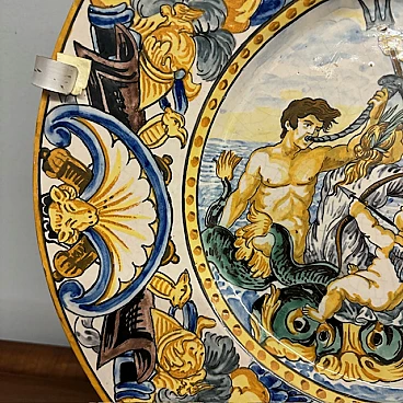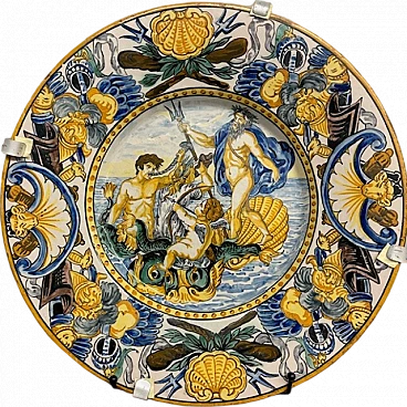 Majolica plate depicting Neptune by Carlo Mollica, 19th century