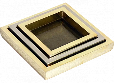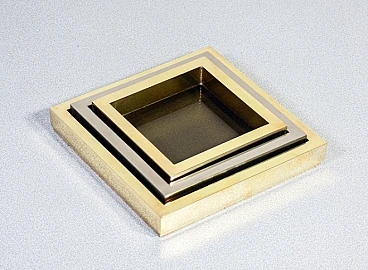 3 Stackable pocket trays in brass and glass. Dimensions: Total height: 5 cm. Width: 23.5cm. Depth: 23.5 cm. Designer Romeo Rega, 1970s.