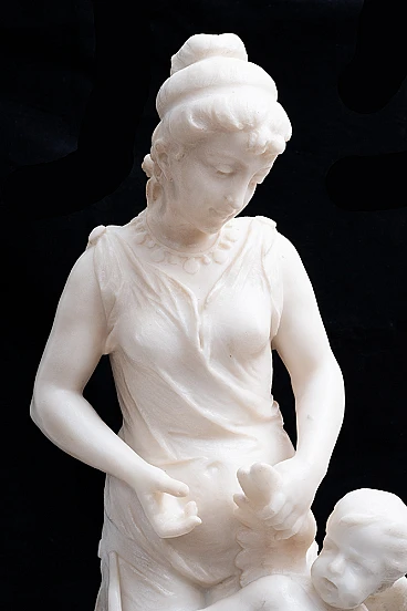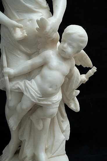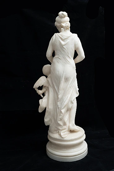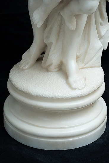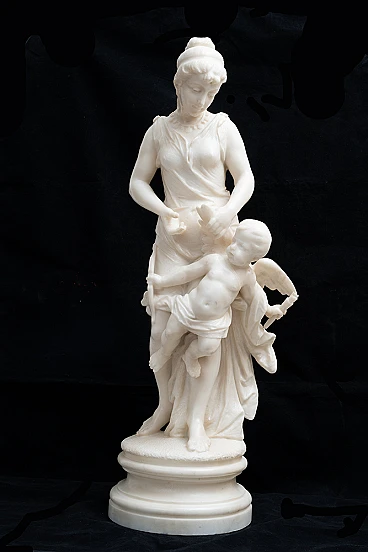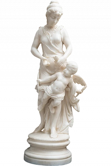 Napoleon III French statuary white marble sculpture from the second half of the 19th century. The female figure is portrayed in a plastic pose dressed in very light clothing while attempting with her left hand to grab the putto by the wings. The putto is depicted in a classical manner with outstretched wings and holding a bow and arrow. The care and precision of the details and the fineness of the face of the robes are of very high quality. Provenance: 19th century France. Excellent state of preservation. Diameter 25 cm, height 70 cm. Certificate of Authenticity. We are at your disposal for further clarification or photographic details. Shipping throughout Italy, Europe and the rest of the world at very low prices with maximum security and traceability. Shipping will be arranged privately.
