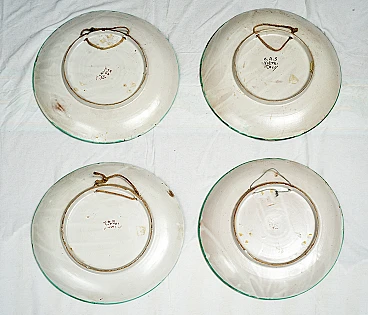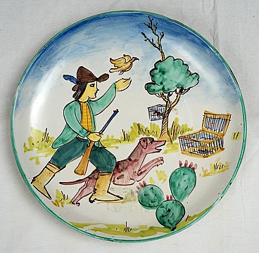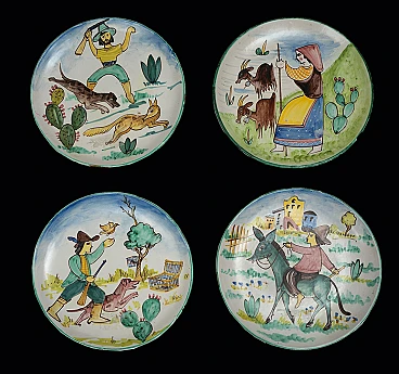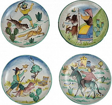 Group of four Vietri majolica plates signed C.A.S.(Ceramiche Artistiche Solimene) depicting pastoral and hunting scenes belonging to the second half of the 20th century. Provenance: Vietri sul Mare (SA). Excellent state of preservation. Diameter 35 cm, height 5 cm. Certificate of Authenticity. We are at your disposal for further clarifications or photographic details. Shipment throughout Italy, Europe and the rest of the world at very low prices in maximum security and traceable. Shipping will be agreed privately.