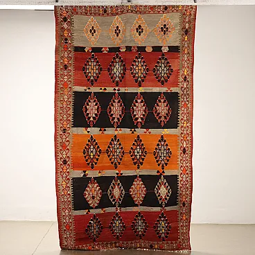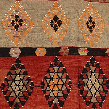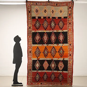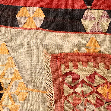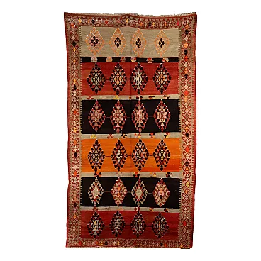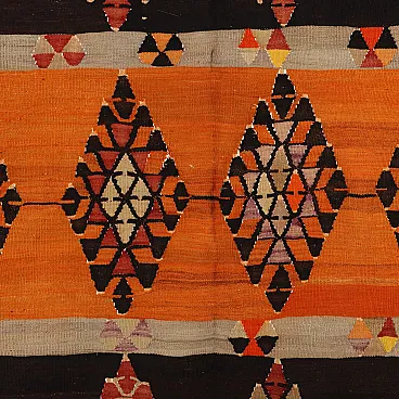 Thin knot Kilim rug in brown and orange wool